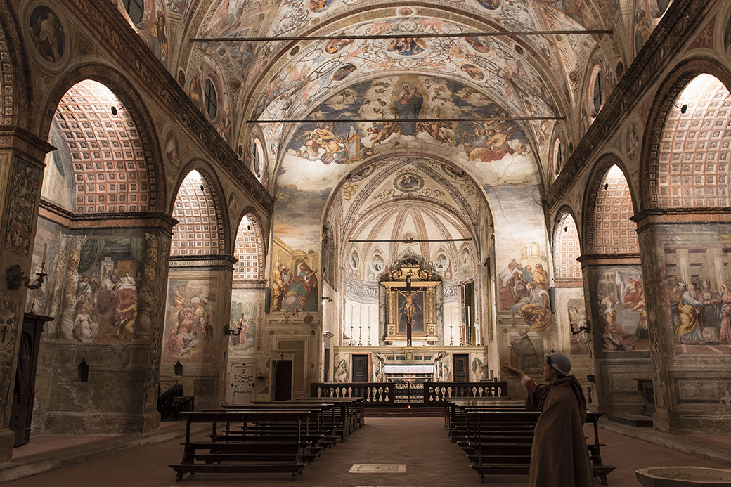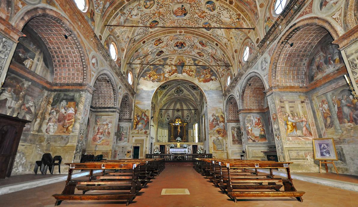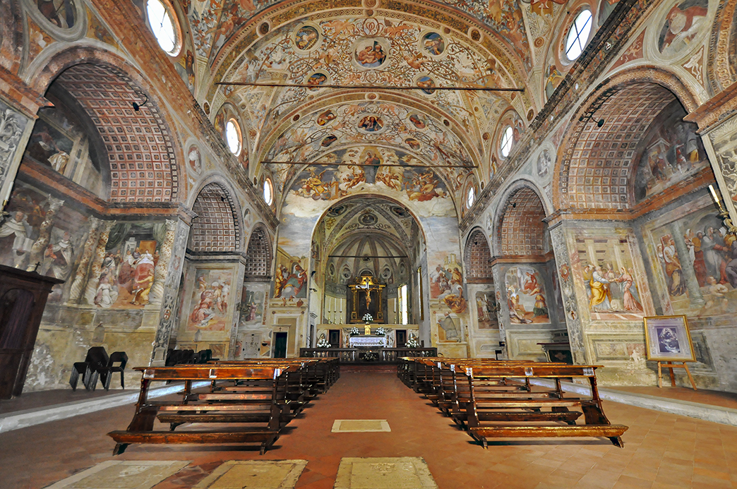 Si trova poco fuori le mura, sull’antica strada Calciana che collegava Bergamo a Cremona. Accanto sorgeva l’antico convento dei frati carmelitani i quali, a partire dal 1492, iniziarono a costruire il convento e successivamente, nel 1501, l’attuale chiesa. L’architettura è semplice, rinascimentale, con facciata a capanna e abside eptagonale. L’interno è a navata unica coperta da volta a botte. E’ interamente decorata ad opera dei pittori Giulio Campi, Francesco Scanzi e dei f.lli Bernardino e Francesco Carminati da Lodi.